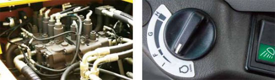 在作业时,操作者可根据实际工况自由选择经济(G)、重载等模式(H),兼顾效率与经济性。