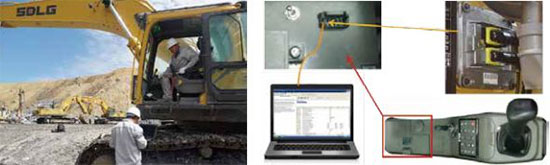 ♦ 驾驶室内配备电脑远程诊断接口及外接电源接口。电脑装上诊断程序(TECHTOOL)后,可进行故障自检,维护方便快捷。