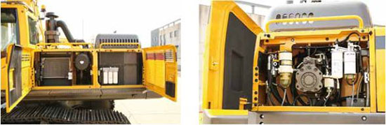 油类滤清器、主泵测压口、燃油加油泵集中布置在同一机罩内,保养、检测、加油便利。