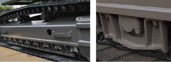 ♦ 标配重载型四轮一带;全链轨护板,保护支重轮和链轨,防止转向时支重轮脱轨。