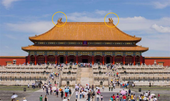 螭吻平生好吞,喜欢东张西望,经常被安排在中国宫殿建筑的屋脊上,做张口吞脊状,并有一剑固定。螭吻还被请到皇宫、庙宇和达官贵族的屋顶上,俯视人间,以此来显示宅主的职权和地位,同样也寄托了主人对于财富和官运的向往。
