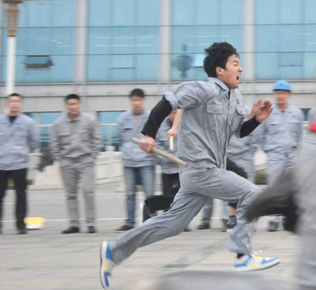 值得一提的是,比赛中也不乏让人感动的画面,一位来自人力资源队的参赛队员在折返弯道后,由于加速过猛不慎摔倒,面对众人紧急关切的目光,这位队员还是不顾擦破的衣服爬起来继续冲刺,全场报以热烈的掌声,为同事的勇敢和执着精神而赞叹!