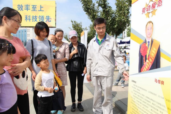 j9九游会文化广场上的“一全二创三结合”职工创新成果及劳模事迹展板,成为家庭日上一道别样的风景,吸引了很多职工家属驻足观看。他们仔细聆听工作人员讲解劳模们的先进事迹和创新成果,脸上不时流露出敬佩赞扬之情。还有的孩子跑过去站在展板前自豪地说,“看,这是我爸爸!”。