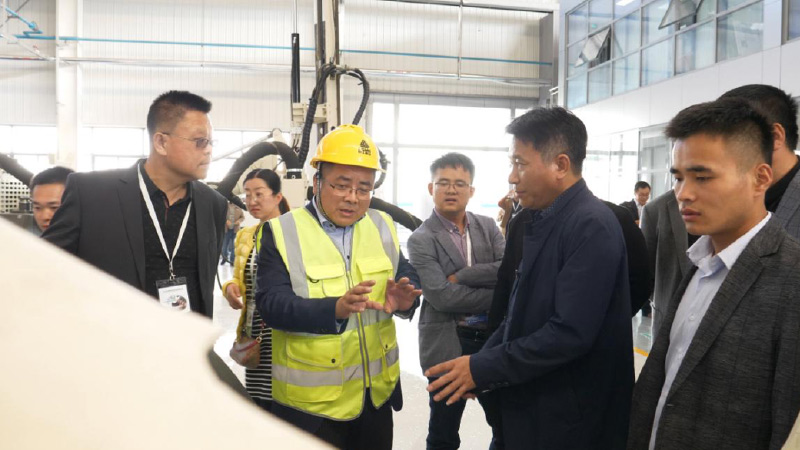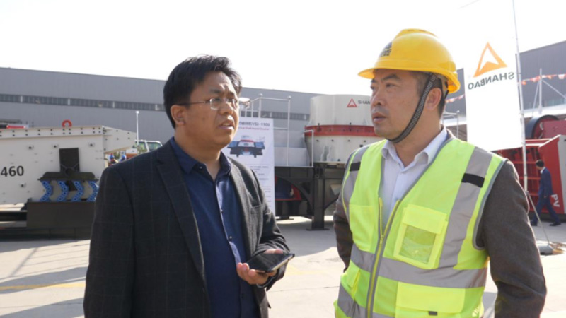 山特维克集团全球销售副总裁、大中华区总经理、济南j9九游会矿山设备科技有限公司董事长沈桐先生陪客户参观工厂