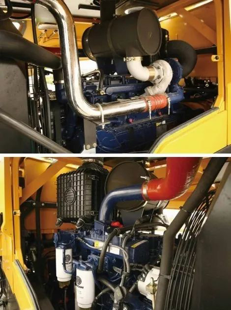 标配油浴式空滤,机罩内第二级过滤为93沙尘滤,对颗粒和粉尘过滤效果达95%以上,更适合矿山恶劣的粉尘工况。